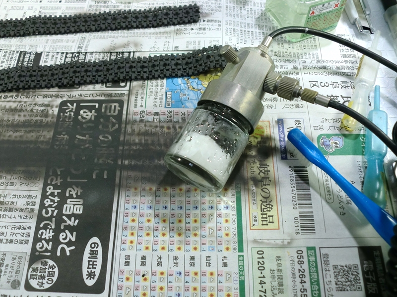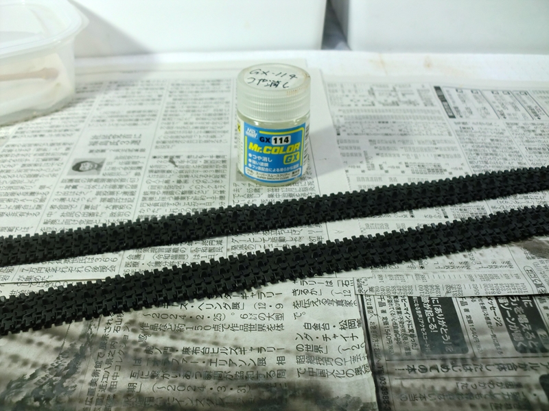 別につや消し塗料なら塗れなくはないんですが、無理をして急ぐ必要もないので、今回は先に履帯の塗装を行いました。