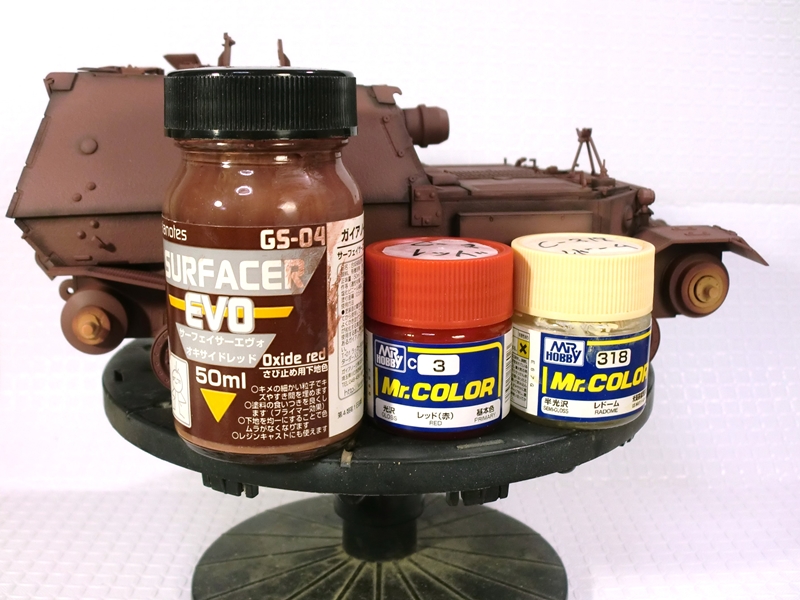 ▲まずはガイアのオキサイドレッドをそのまま全体にエアブラシしました。